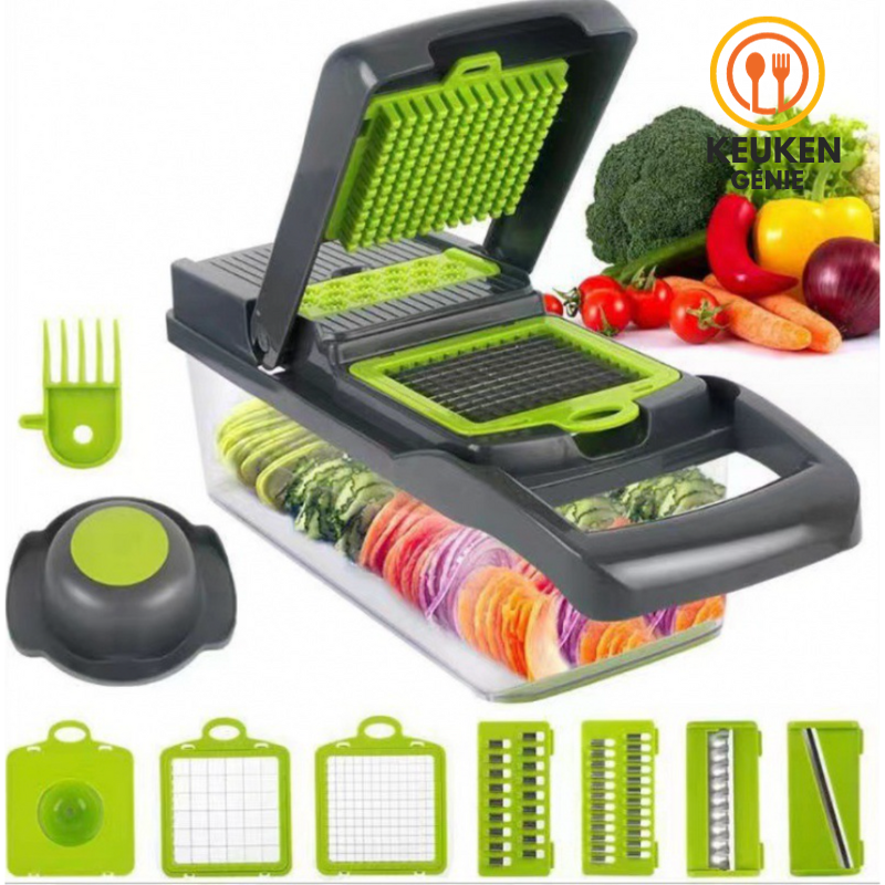 Entdecken Sie die Vielseitigkeit unseres 12-in-1 Multifunktionalen Gemüseschneiders und Zerkleinerers: