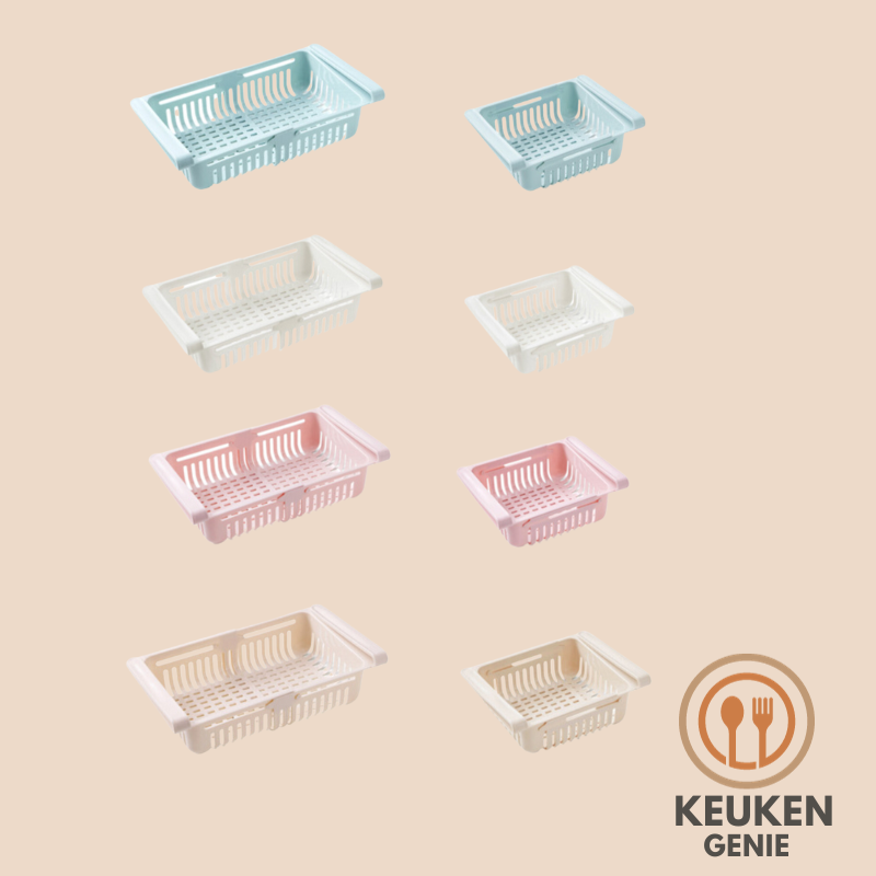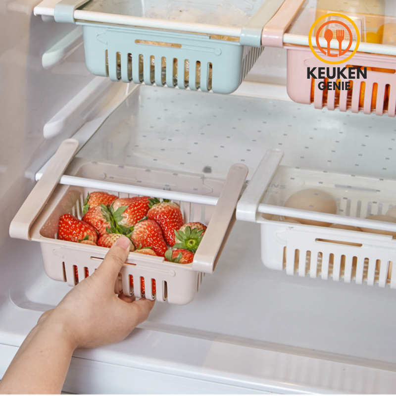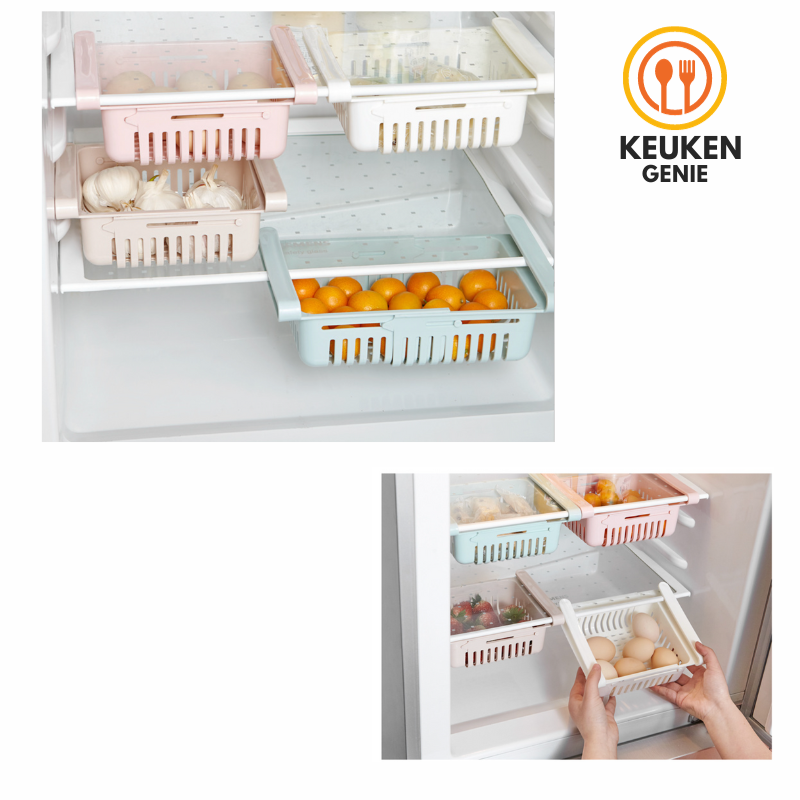 Bring Magie in die Organisation deines Kühlschranks mit dem KoelkastOpberg Genie™. Dieses geniale ausziehbare Aufbewahrungskorb macht es einfacher denn je, deinen Kühlschrank ordentlich und organisiert zu halten. Mit einem vielseitigen und platzsparenden Design passt dieser Korb perfekt in jeden Kühlschrank und kann leicht ausgezogen werden, um mehr Gegenstände aufzunehmen.