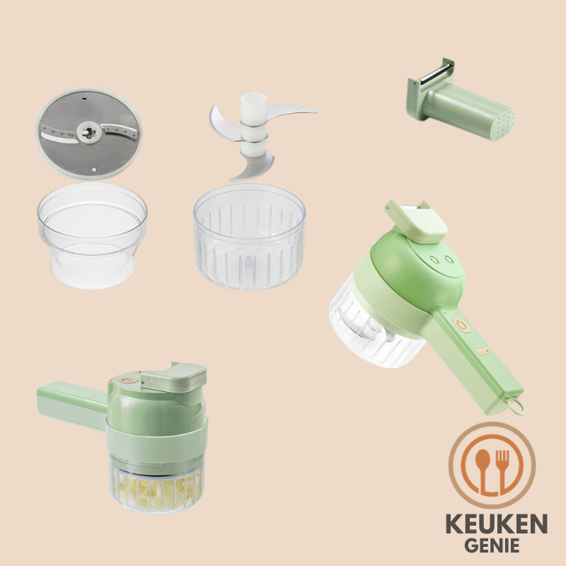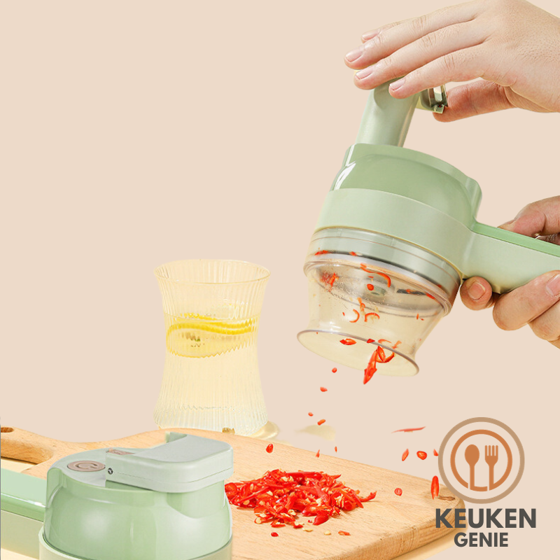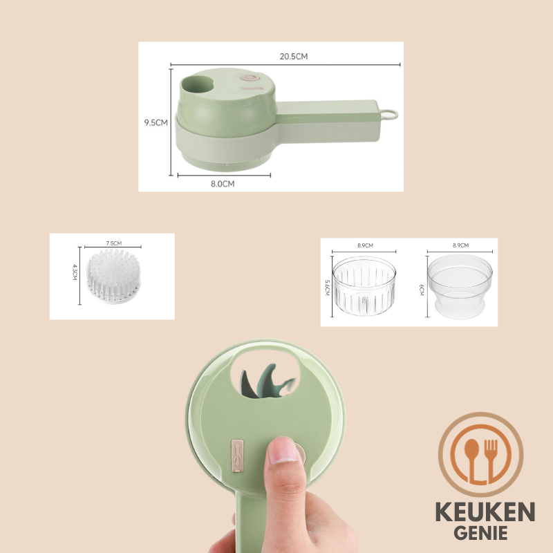 Schneide dein Gemüse in nur 4 Sekunden fein!⏱🔪Sage Lebewohl zu zeitaufwändigem Kochen! Mit unserem einfach zu bedienenden SliceGenie™ wird die Zubereitung deiner Lieblingsgerichte mühelos. Der SliceGenie™ wird mit einem Aufsatz geliefert, mit dem du dank der elektrischen Funktion mühelos Geschirr, Pfannen und Küchenutensilien reinigen kannst