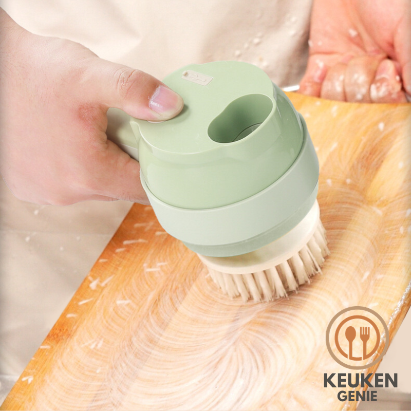 Mit dem SliceGenie™ ist Reinigen ein Kinderspiel. Entfernen Sie mühelos selbst hartnäckigsten Schmutz von Ihrem Geschirr, Pfannen und Töpfen. Dank der mitgelieferten elektrischen Aufsatzbürste wird das Schrubben zum Kinderspiel. Eine unverzichtbare Funktion für jede moderne Küche!